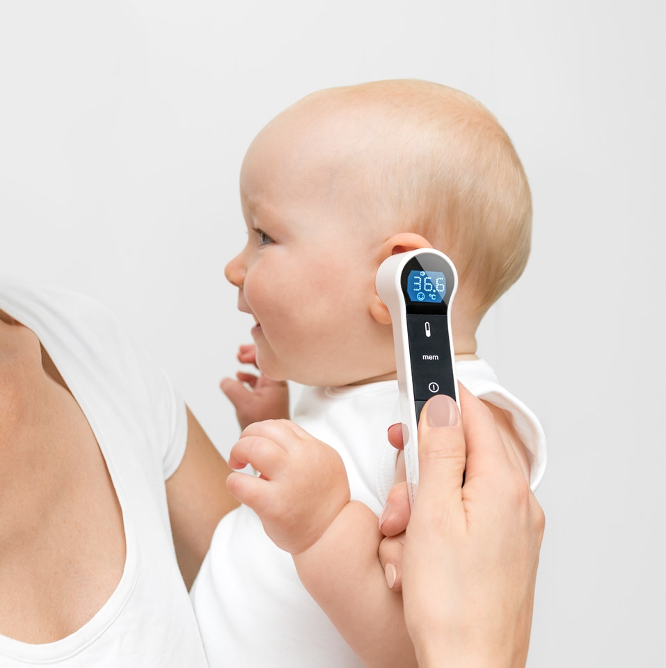 Teploměr je možné použít také pro měření teploty dalších částí těla nebo předmětů. Teploměr si pamatuje 9 posledních naměřených hodnot a je vybaven zvukovým signálem.
